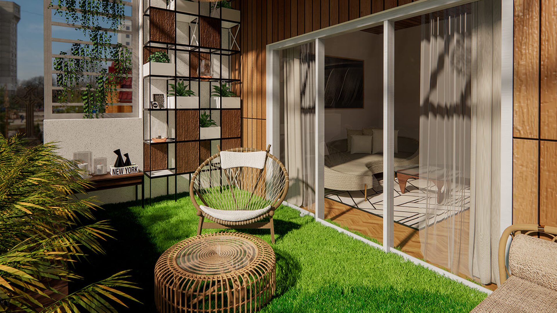 For those who prefer a sleek and modern look, our contemporary minimalist balconies emphasize clean lines, neutral palettes, and functional design. Integrated storage solutions and streamlined furniture ensure a clutter-free environment, while smart lighting enhances the ambiance after sunset.