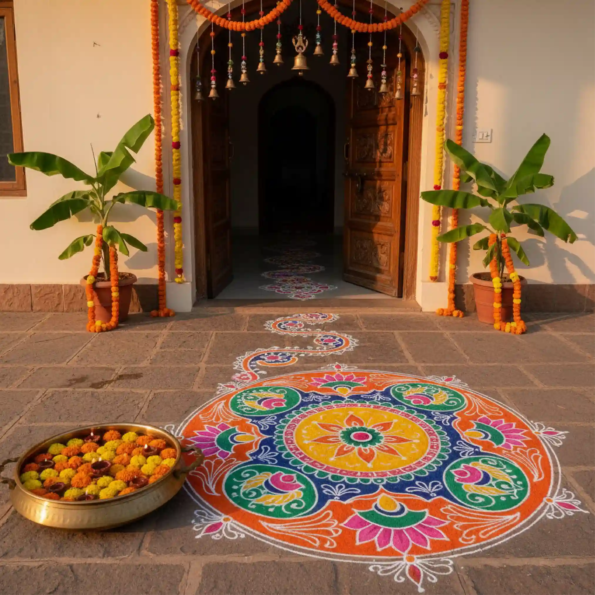 First impressions matter. Swap the usual mat for a vibrant, patterned one, or create a mini rangoli trail that leads your guests from the entrance to the heart of your home. A small bowl of marigolds or floating diyas instantly sets the festive mood. You can even add quirky little touches, like hanging a string of tiny bells or beads for an auditory delight every time someone enters. The idea is to make your guests feel the festival before they even step inside.