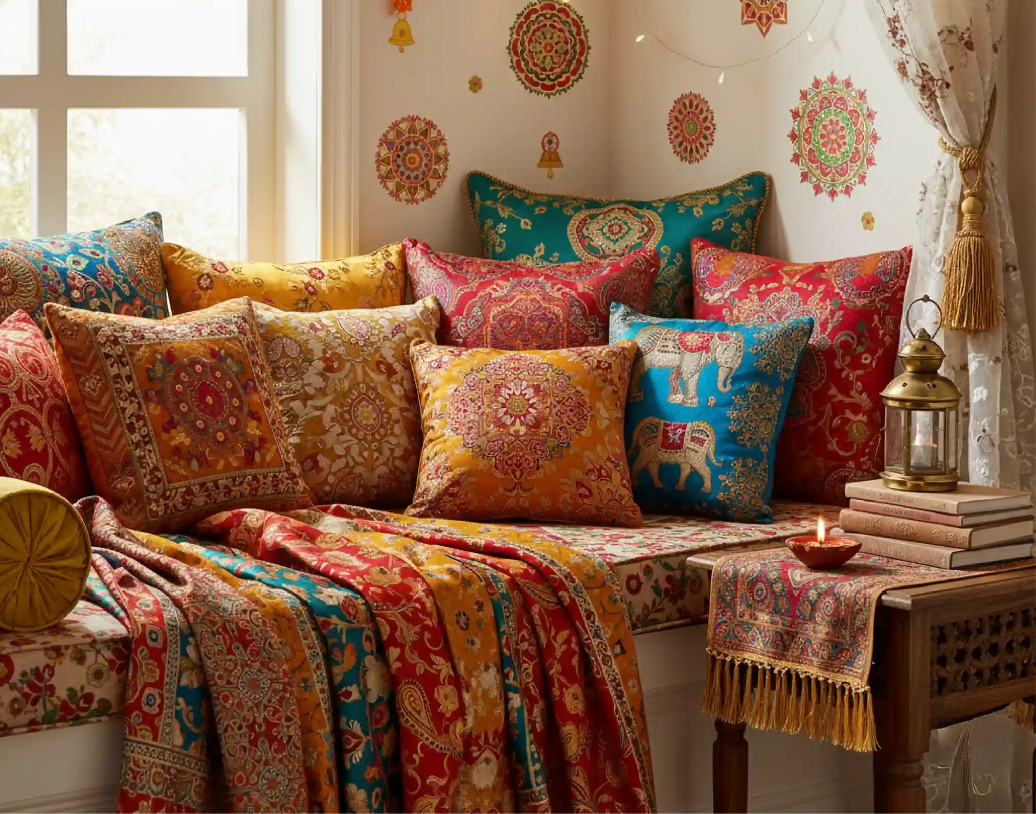Cushions, throws, and table runners are the fastest way to inject color, texture, and festive cheer. But don’t limit them to the sofa. Layer textures on window seats, reading nooks, or even your dining chairs. Peel-and-stick festive decals can turn plain walls into art pieces, and colorful floor cushions invite guests to lounge in style. Mix patterns with caution: stripes, florals, and traditional motifs can coexist beautifully if you stick to a complementary palette.